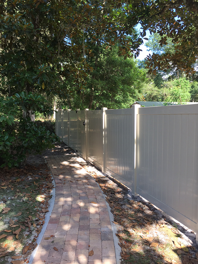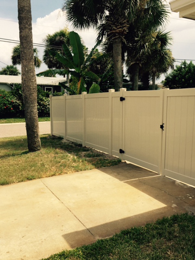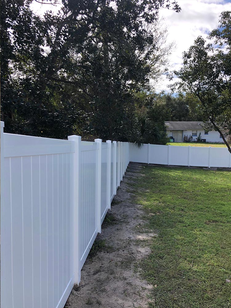 Made from a durable polyvinyl (PVC) resin, a vinyl fence will not rust and is extremely easy to clean. When professionally installed, your vinyl fencing will have the strength to withstand strong winds, heavy rains and hot summers that are common in the Central Florida area. Plus, it will never need re-painting. That’s why vinyl fencing is one of the most popular types of privacy fences installed today.